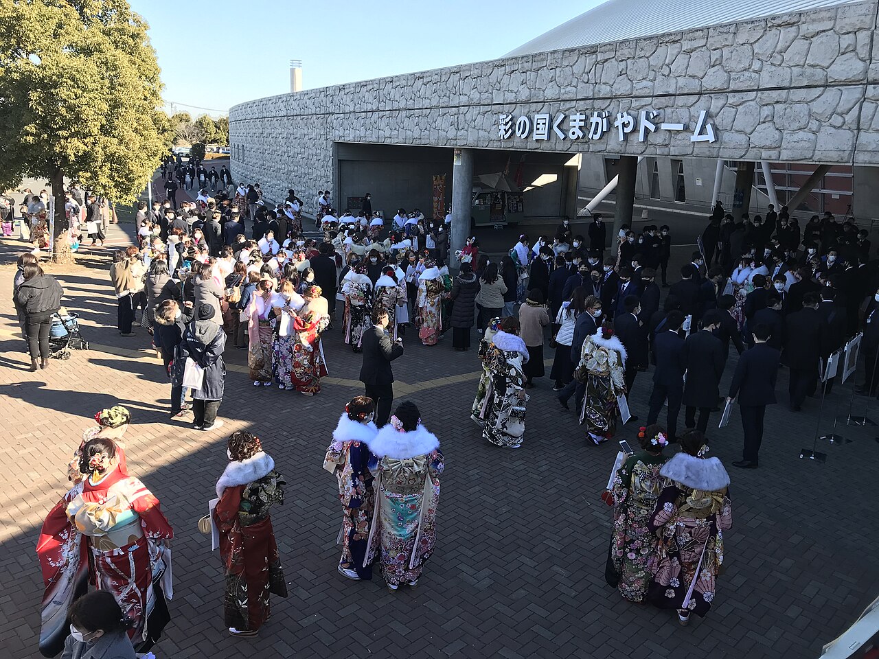 成人式せいじんしき毎年まいとし1がつだい2げつ曜日ようびおこなわれます。このは、「成人せいじん」とばれて、祝日しゅくじつとなっています。成人式せいじんしきには、あたらしい大人おとなたちが特別とく べつふくて、まちのホールでおいわいする式典しきてん出席しゅっせきします。おんなは、おおくの場合ばあいいろとりどりの振袖ふりそでて、おとこは、スーツやはかまをて、この大切たいせつをおいわいします。